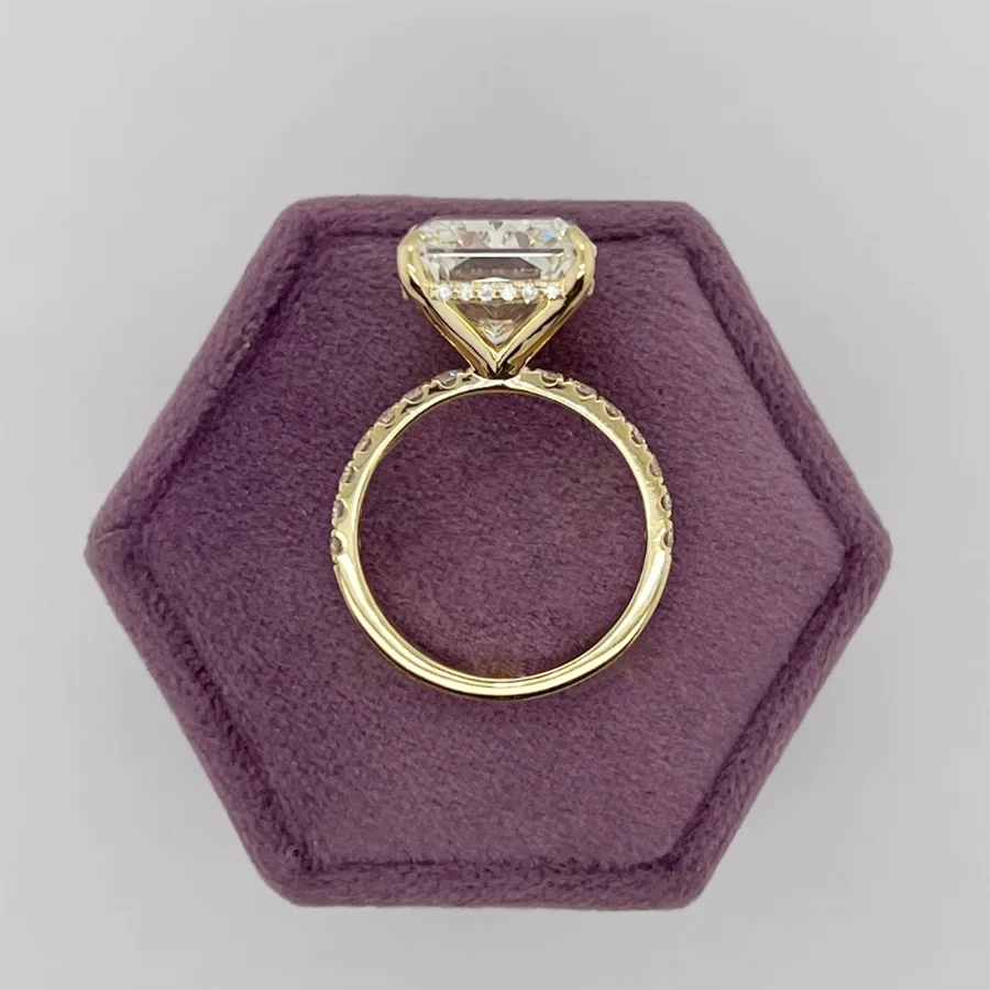Anillo de compromiso de diamante cultivado en laboratorio de corte radiante de oro amarillo de 10 quilates 5CT DEF VS-VVS CVD HPHT Anillo de compromiso de diamante de laboratorio Anillo de halo IGI