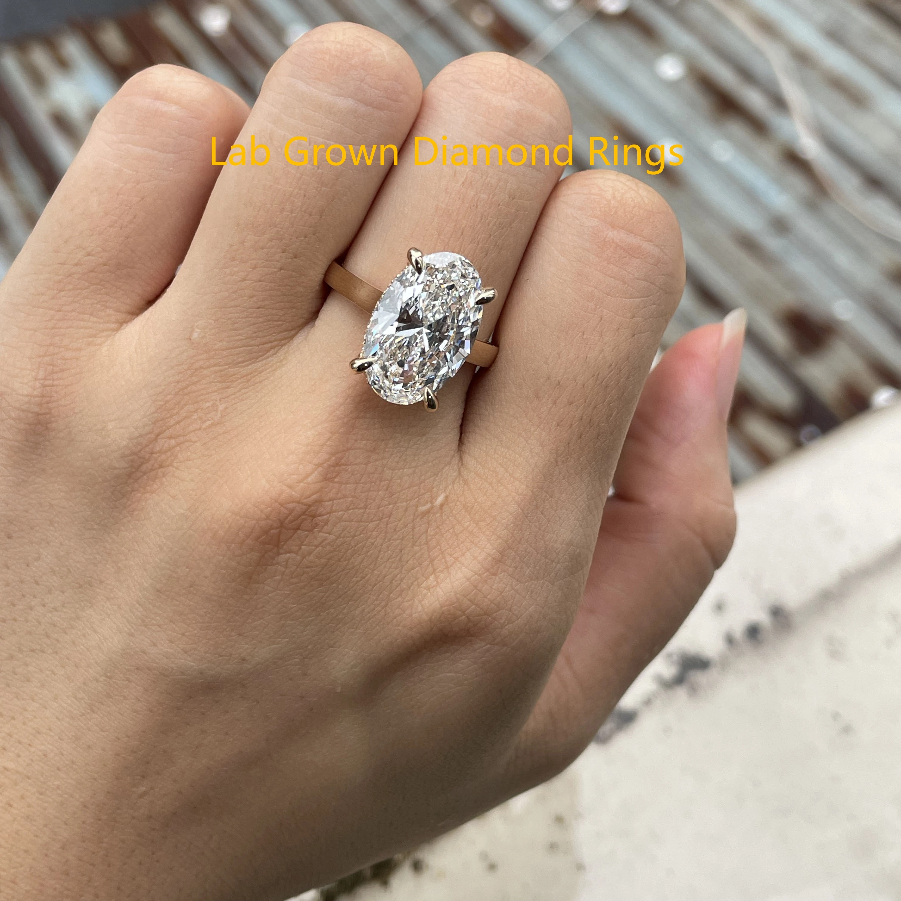 Anillo de compromiso de oro amarillo de 14k con ajuste de punta de piedra principal de 7 quilates con diamante de corte ovalado cultivado en laboratorio para mujer, joyería fina, certificado IGI
