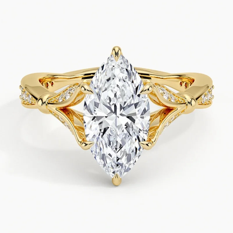 Anillo de compromiso IGI de diamante de corte marquesa de 1,0-3,0 quilates, oro amarillo de 18 quilates, anillo de diamante genuino cultivado en laboratorio, joyería de buenos de lujo