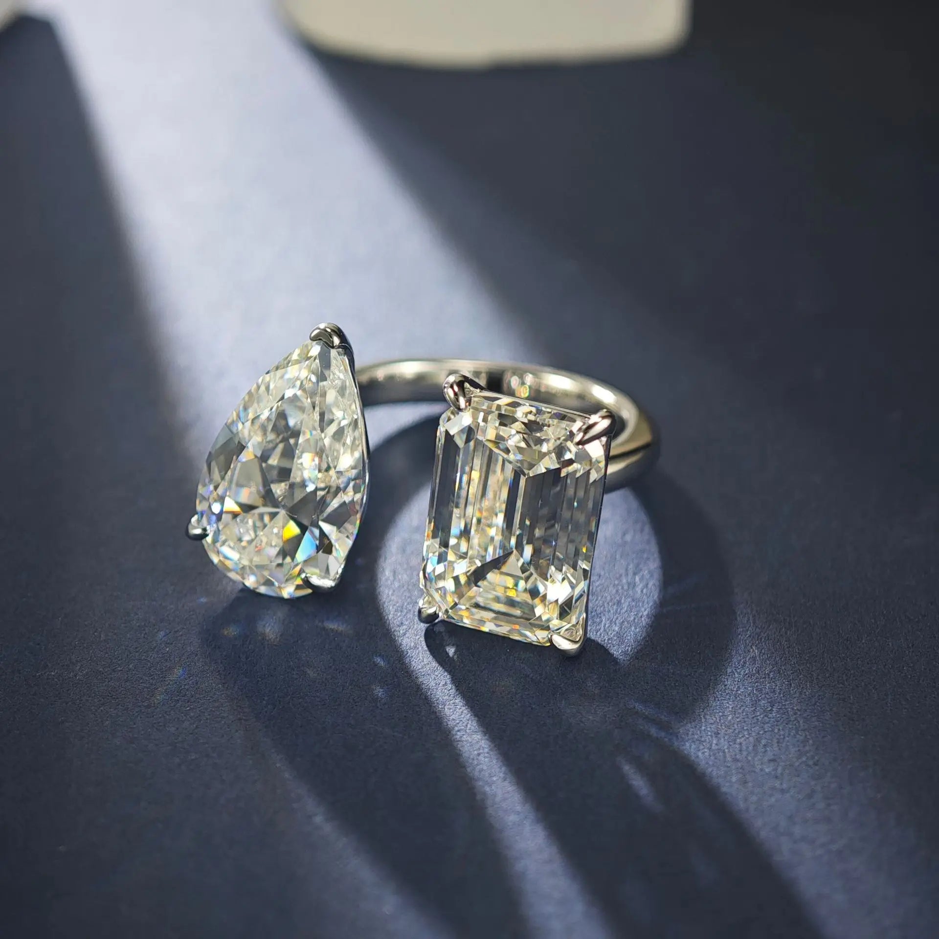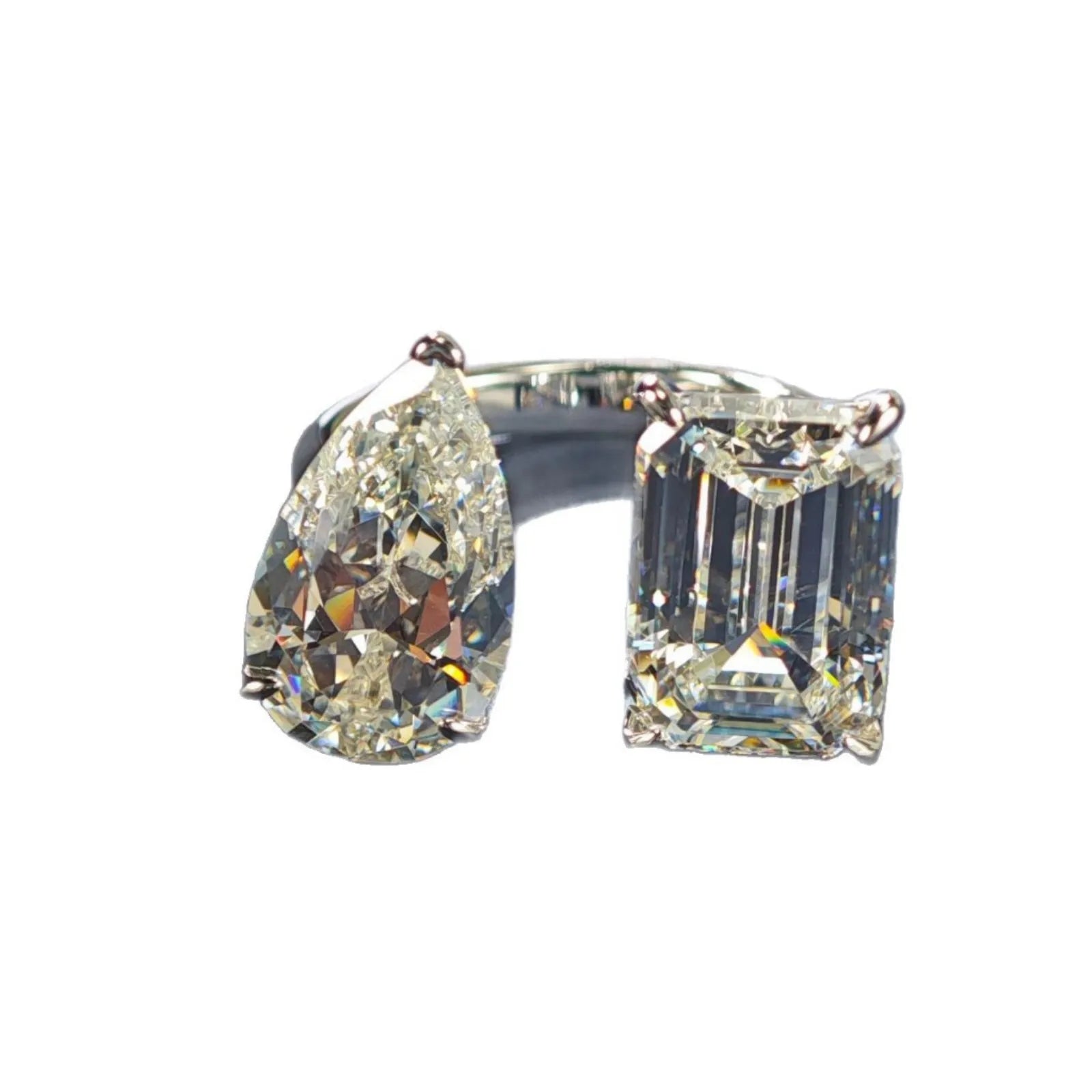 Este anillo de platino PT950 destaca por sus dos moissanitas de 12 quilates en forma de perla, ofreciendo un diseño único y brillante ideal para mujeres que buscan elegancia y estilo. Certificado por NGTC, este anillo de cóctel combina materiales naturales y ajuste de punta para asegurar un calce perfecto. Perfecto para ocasiones especiales, su textura pura y acabado en platino garantizan una alegría sofisticada que realza cualquier outfit de fiesta.