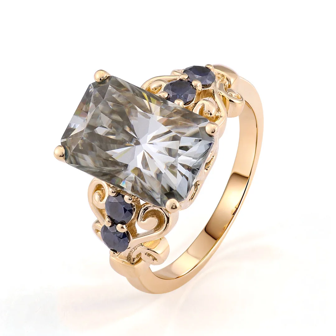 Anillos llamativos de moissanita gris provenzoso para mujer, joyería DIY de lujo de 14K, anillos de aniversario de 5,5 quilates para graduación con GRA