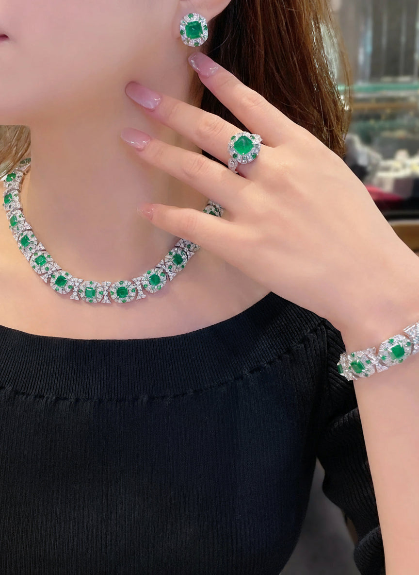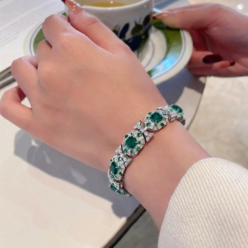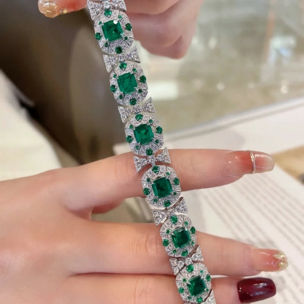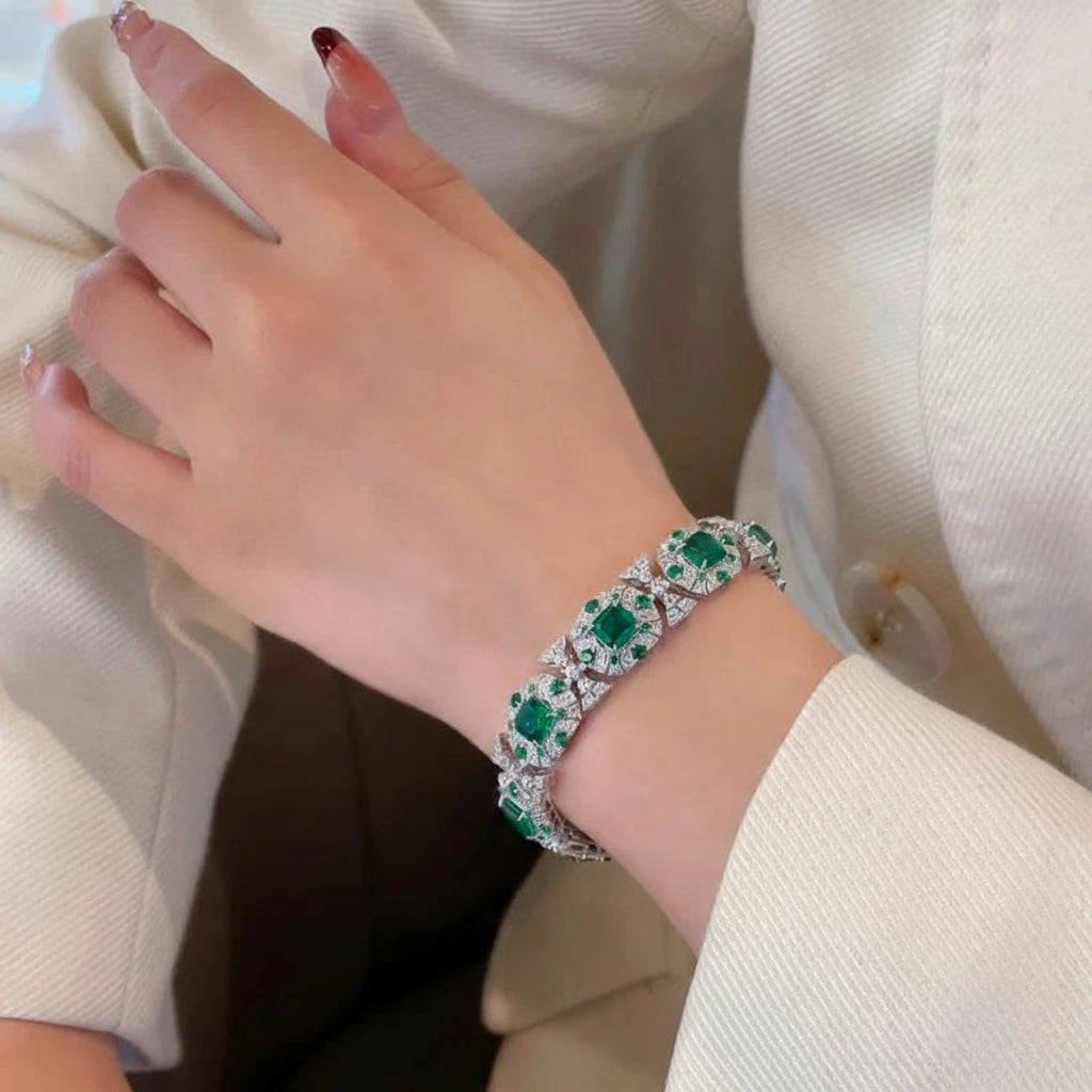 Con certificado de autenticidad y un diseño a la moda, esta pulsera combina elegancia y lujo para mujeres. Fabricada en plata esterlina 925 con baño de oro, destaca por su deslumbrante esmeralda sintética cultivada y diamantes completos. Perfecta para cualquier ocasión especial, esta joya fina ofrece calidad garantizada sin productos químicos. Un conjunto imprescindible para realzar tu estilo con sofisticación y confianza.