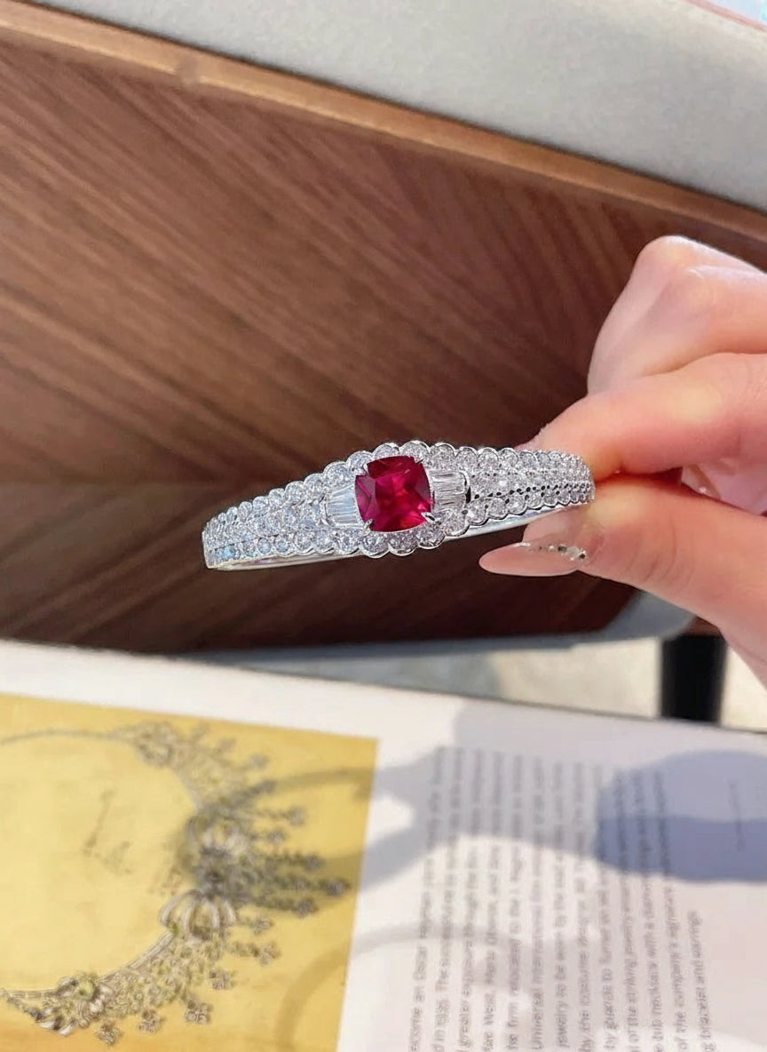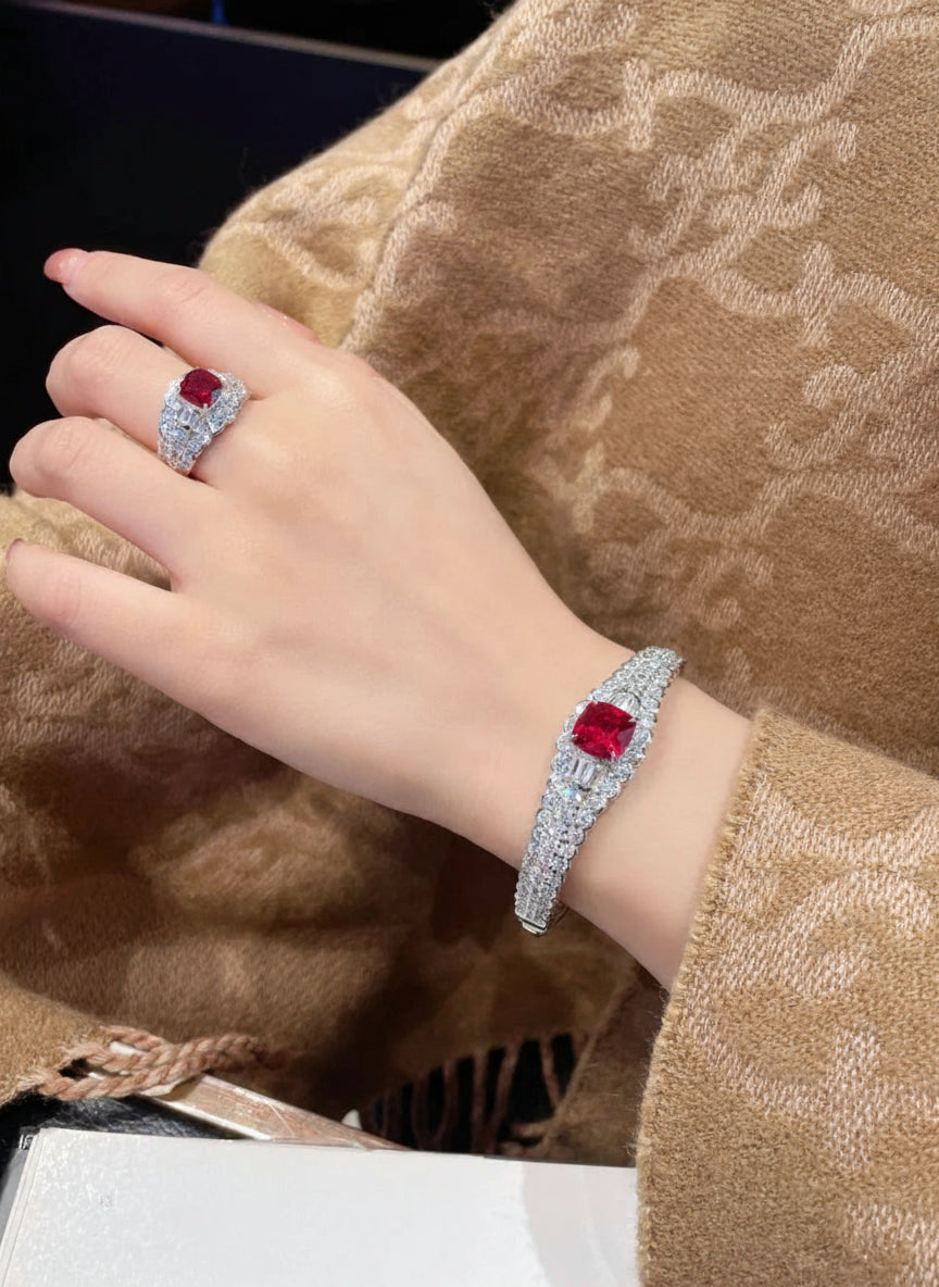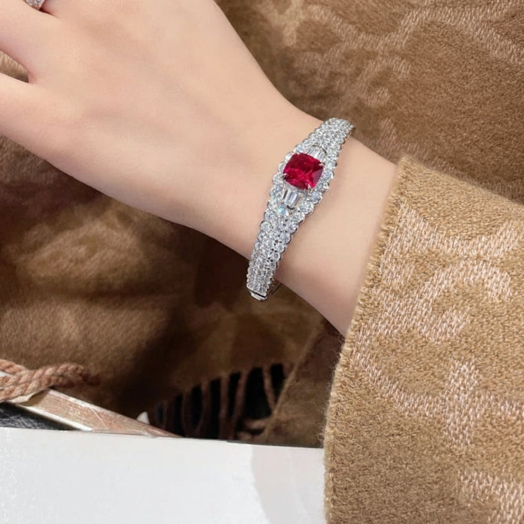 Pulsera de rubí con piedras preciosas sintéticas cultivadas cuadradas de princesa chapada en oro blanco