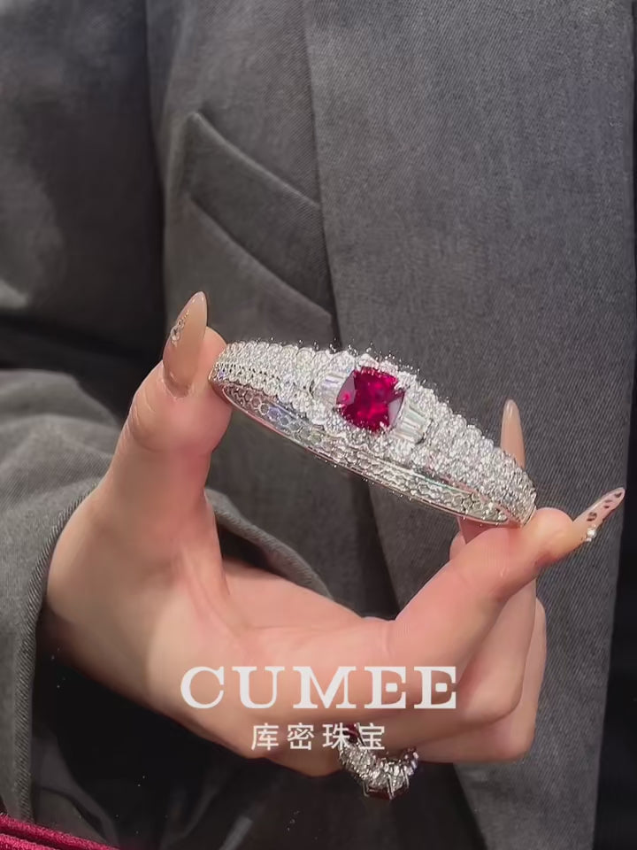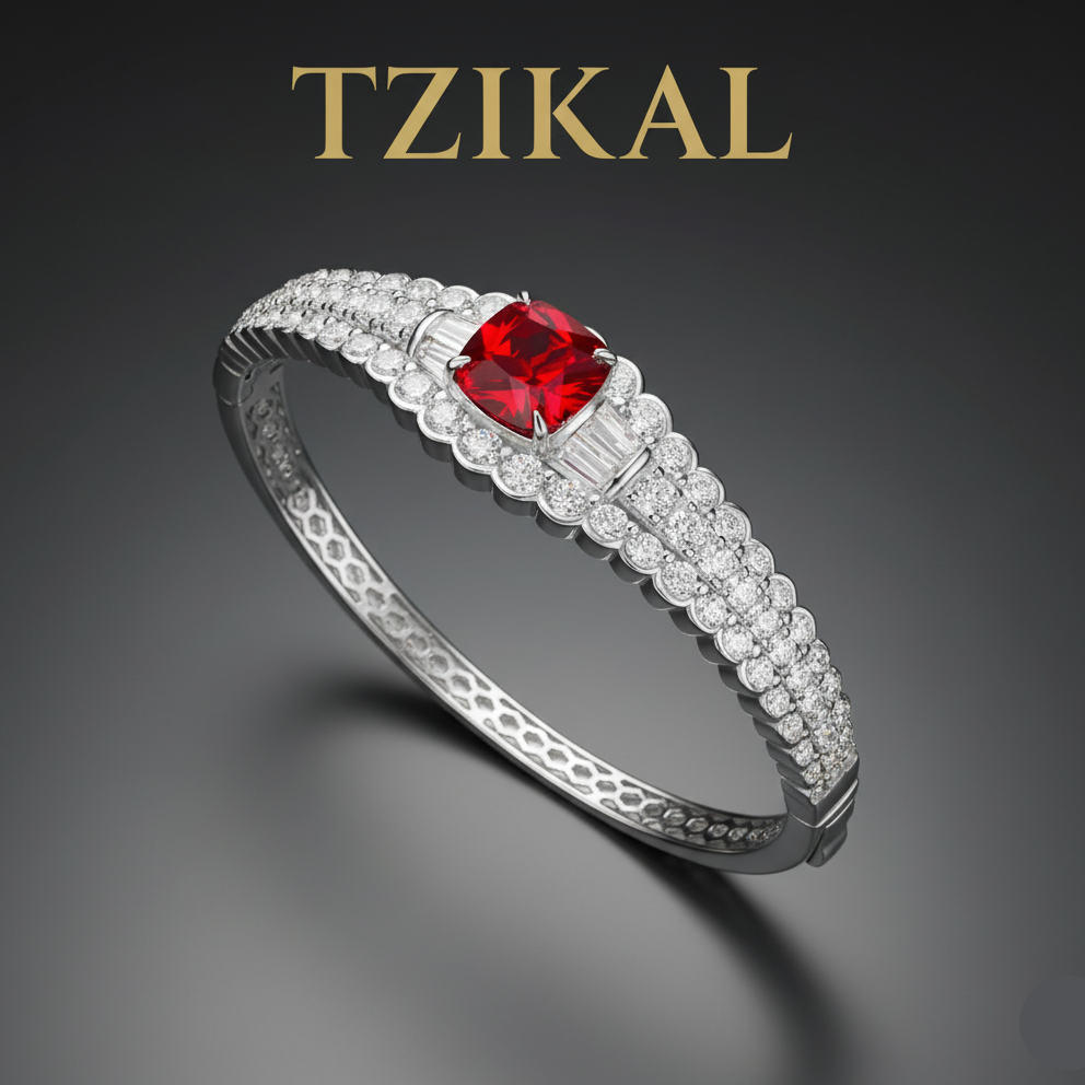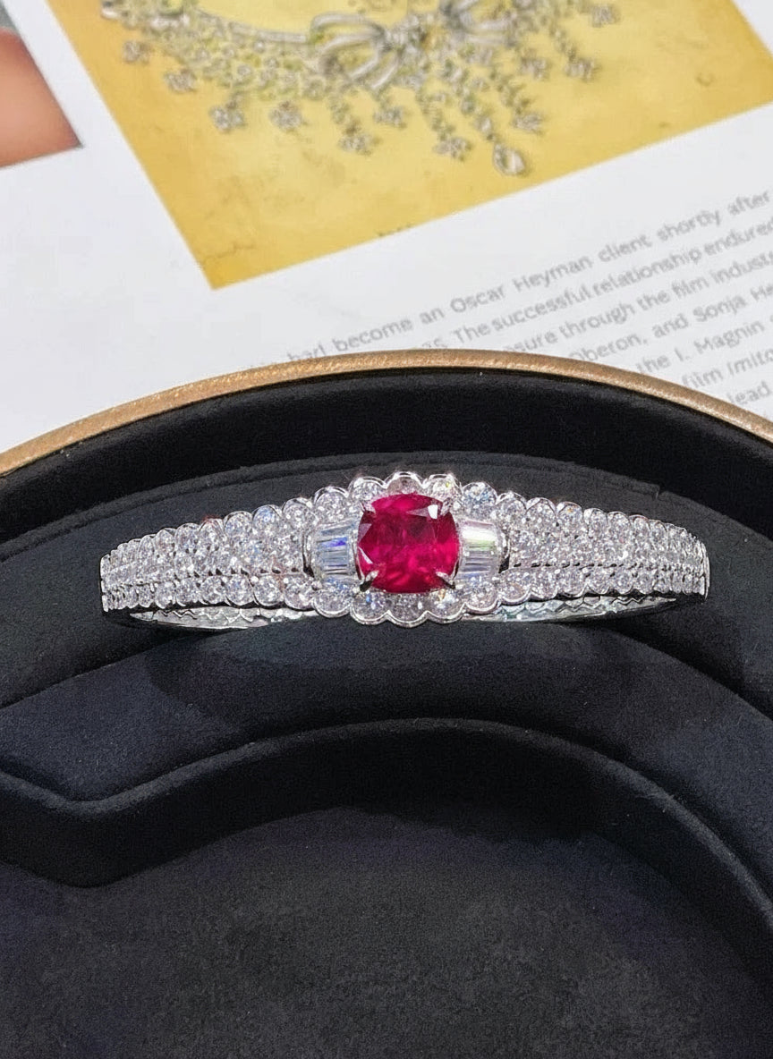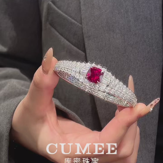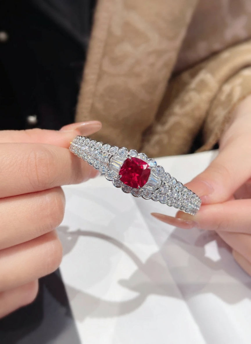 Pulsera de rubí con piedras preciosas sintéticas cultivadas cuadradas de princesa chapada en oro blanco