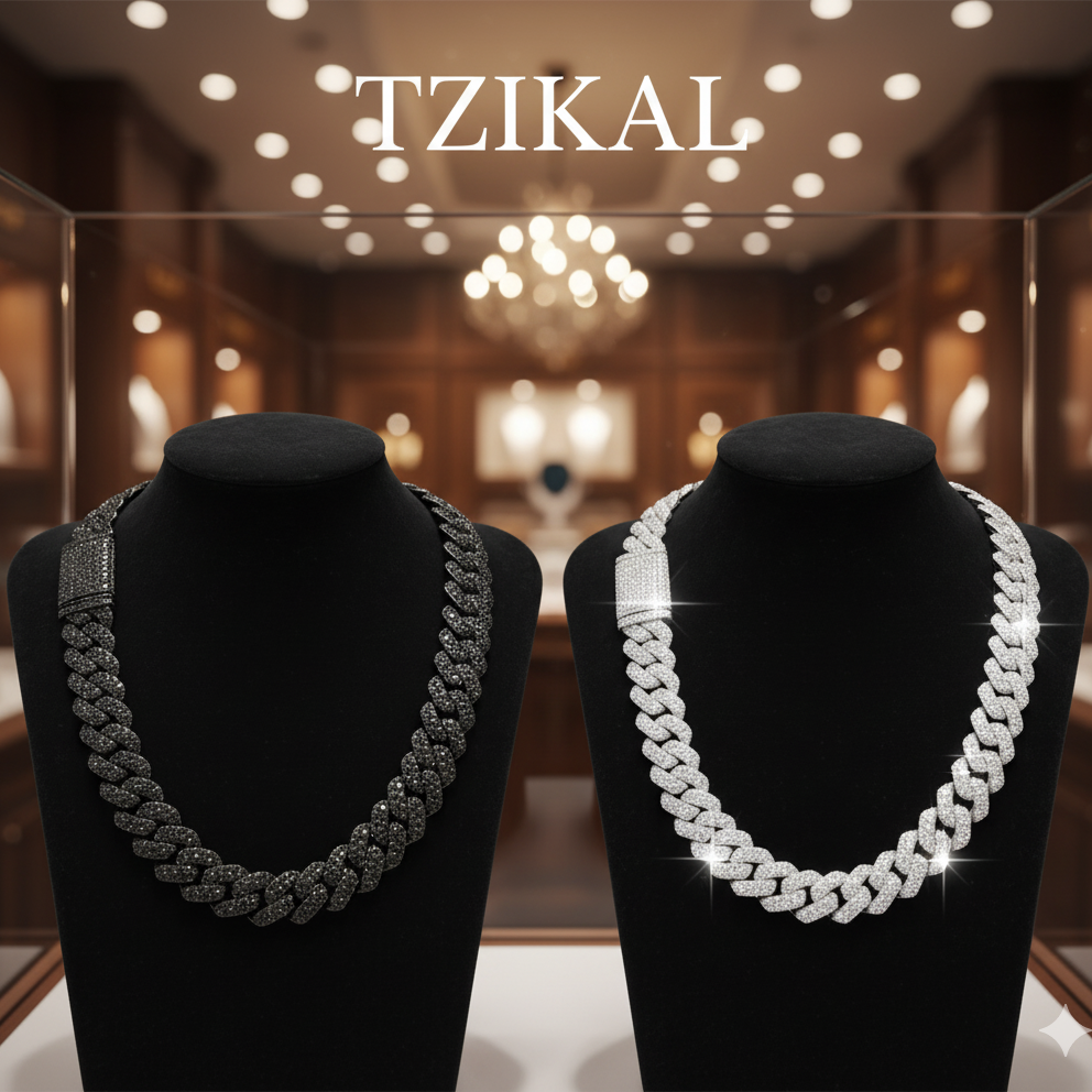Destaca con esta cadena cubana de 10 mm realzada con una brillante moissanita negra, que combina estilo audaz y sofisticación para elevar cualquier look.
