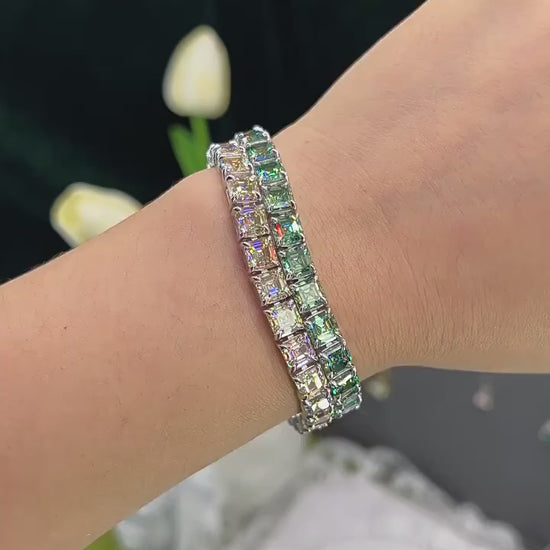 Esta pulsera tenis presenta una moissanita de corte esmeralda de 5.5 mm, que añade un brillo excepcional y sofisticación a tu estilo. Perfecta para quien busca elegancia y distinción en cada detalle.