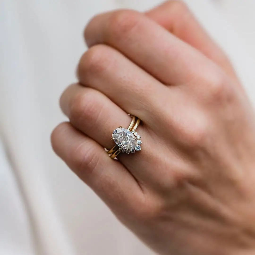 JOVOVASMILE-Juego de anillos de moissanita para mujer, sortija de oro de 14 quilates con corte ovalado de hielo picado, joyería con GRA, 2,5 quilates, 10x6,5mm