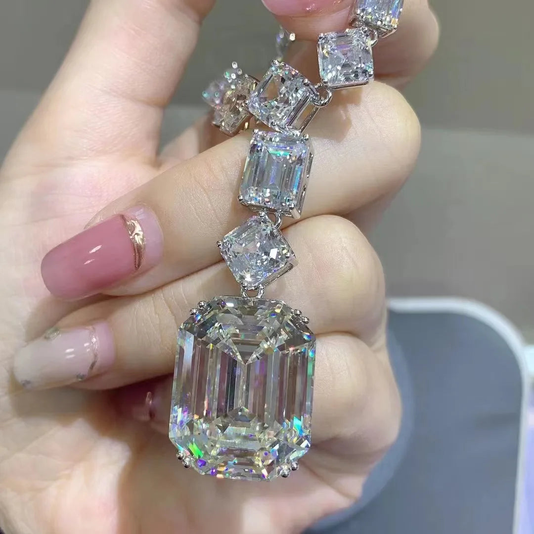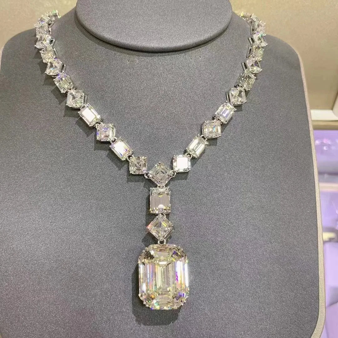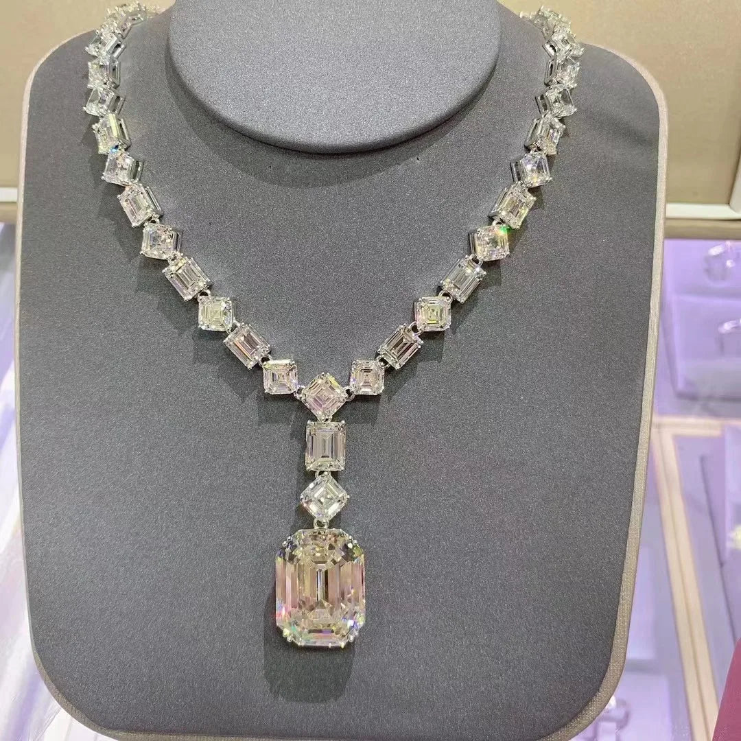 Collar de moissanita de corte esmeralda de 50 quilates, de lujo,