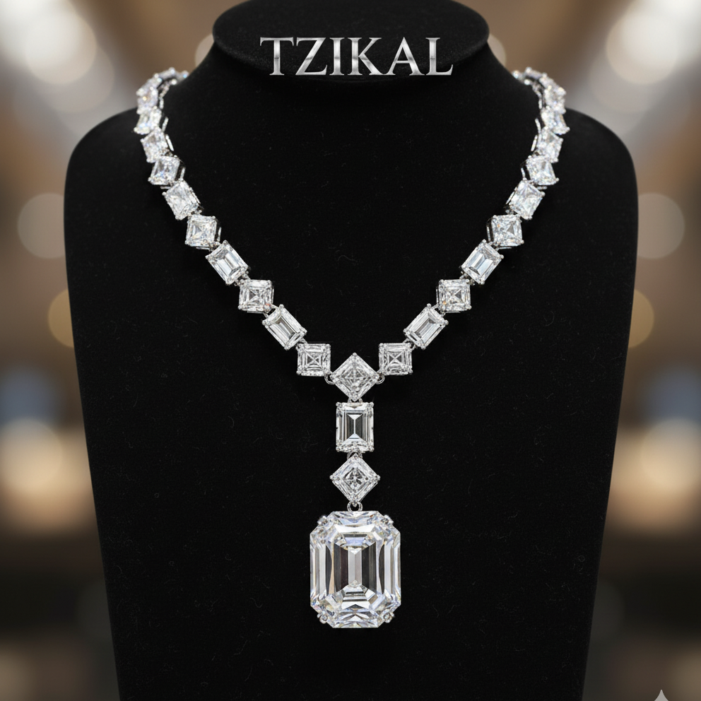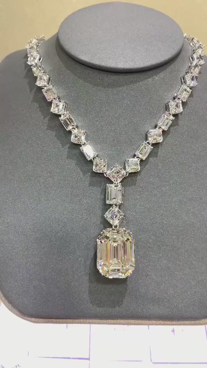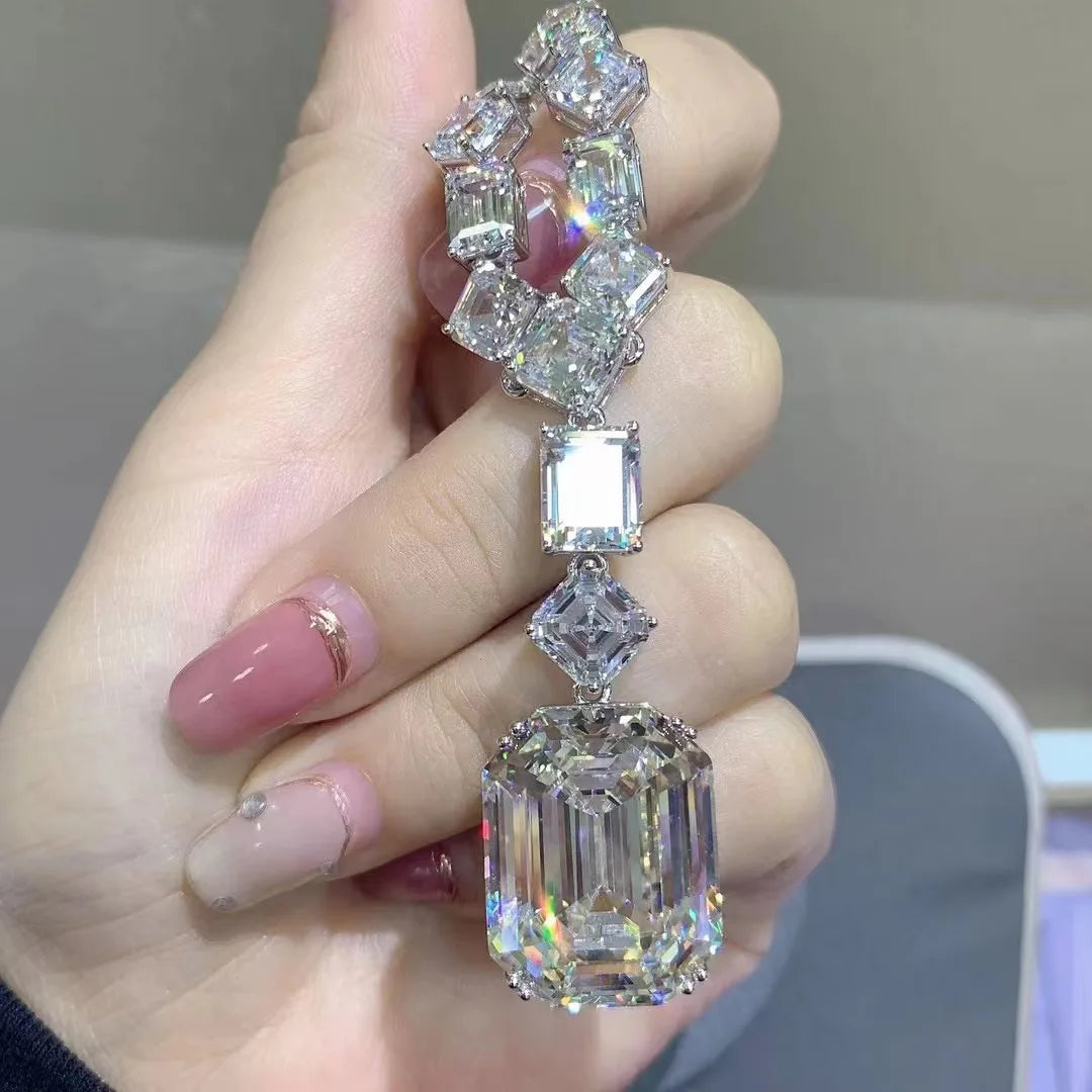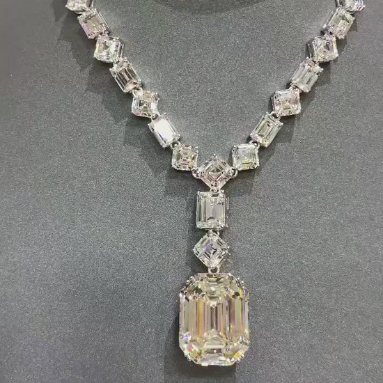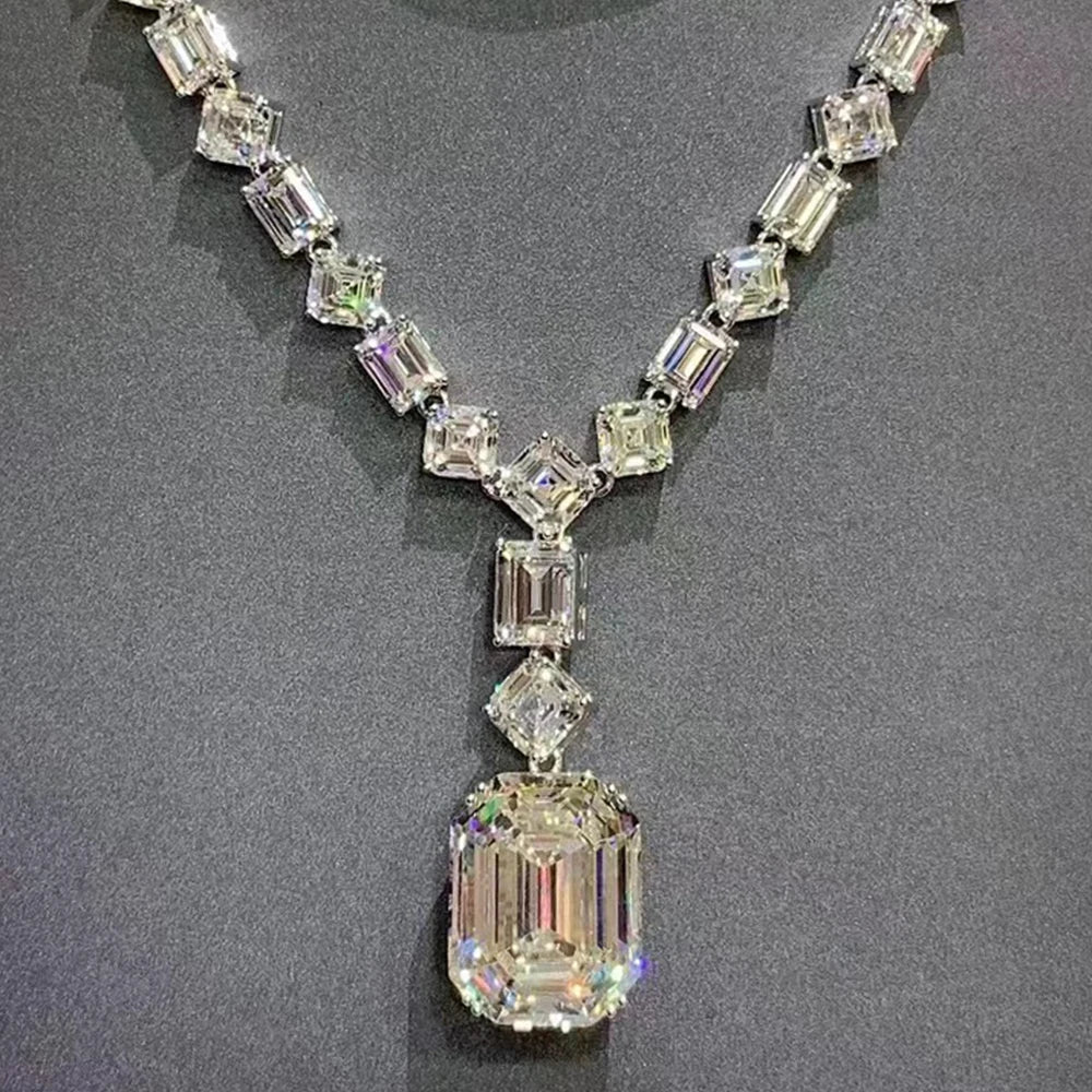 Collar de moissanita de corte esmeralda de 50 quilates, de lujo,