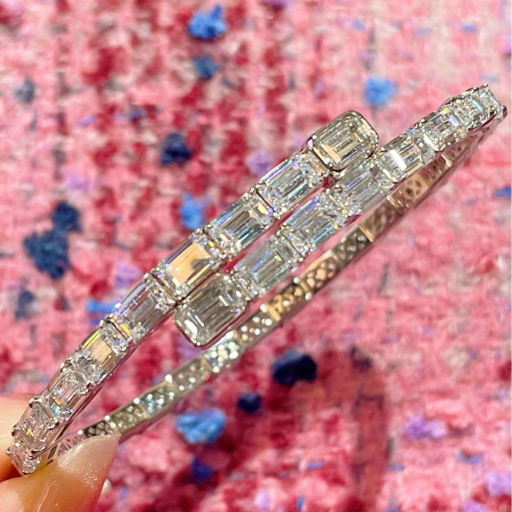 100% Plata de Ley 925 brillante laboratorio zafiro piedras preciosas pulseras joyería fina para mujeres regalos de aniversario