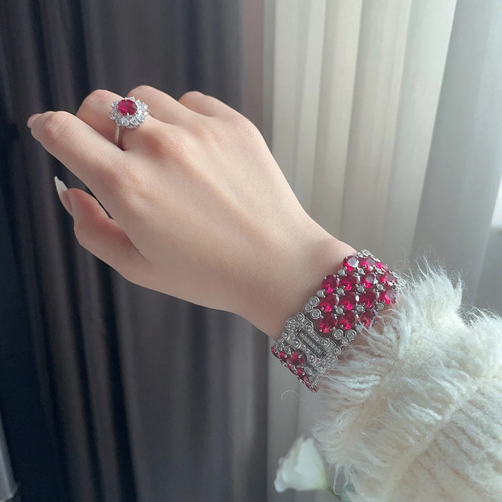 Lujo Vintage 100% Plata de Ley 925 corte ovalado 6*8 MM rubí rosa