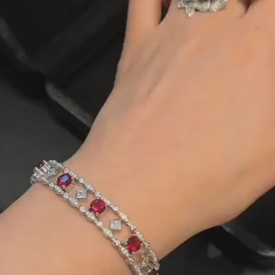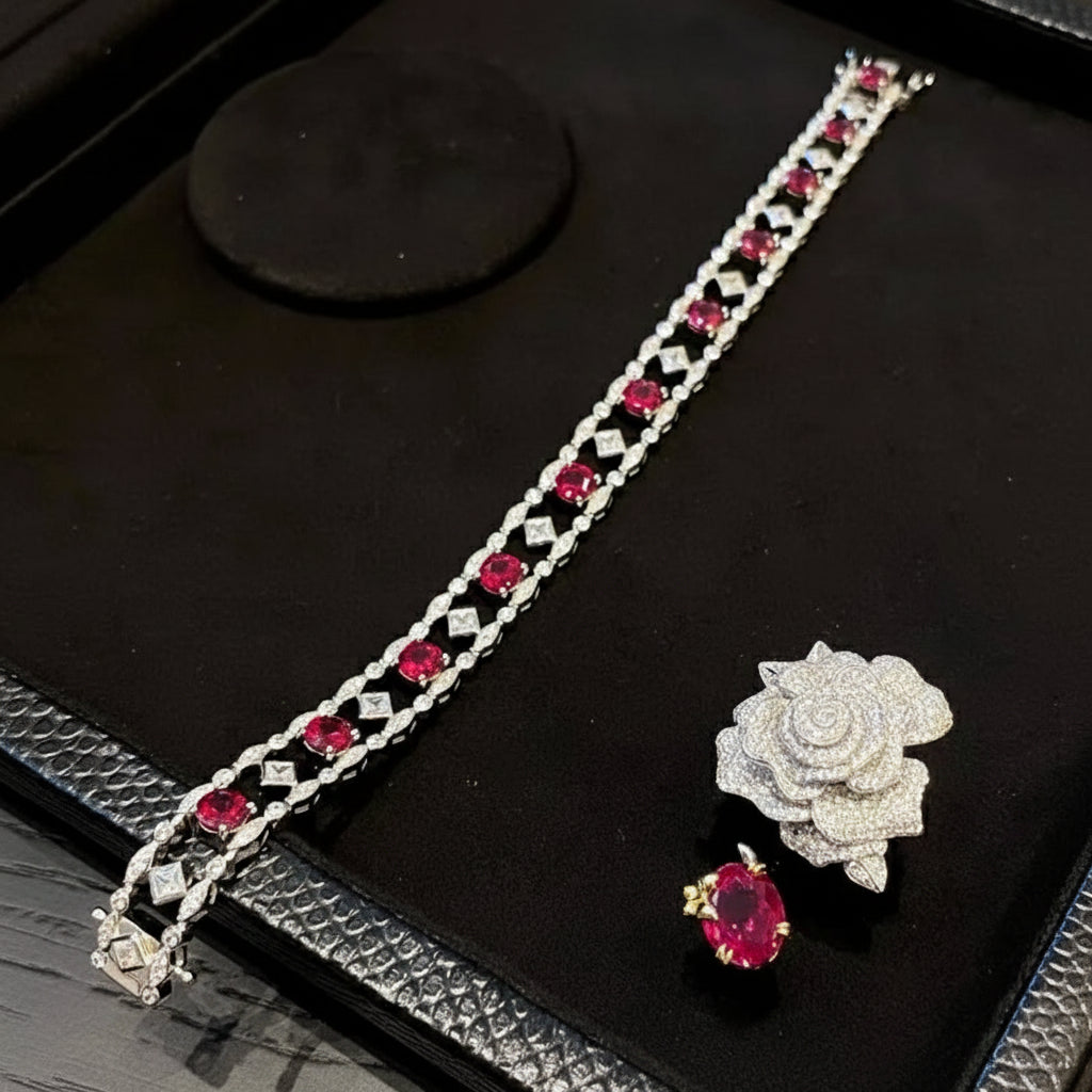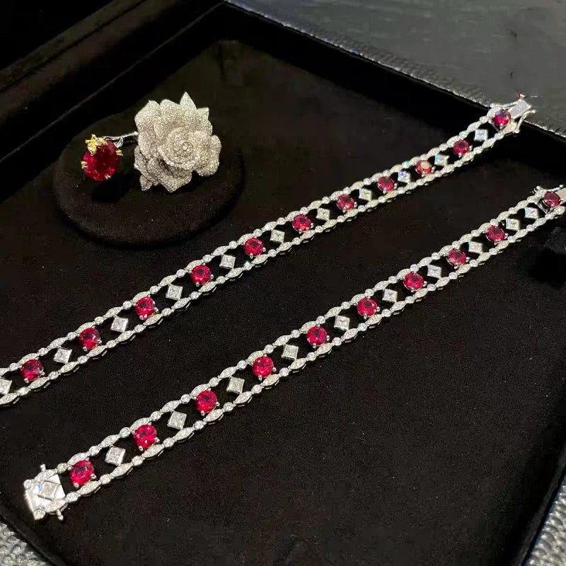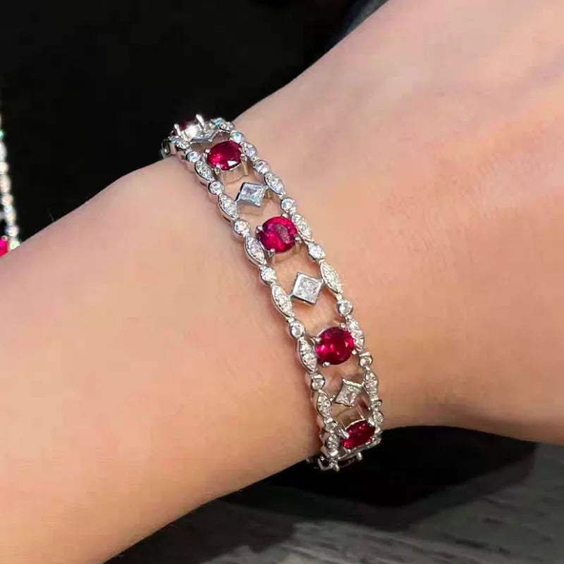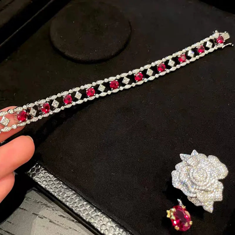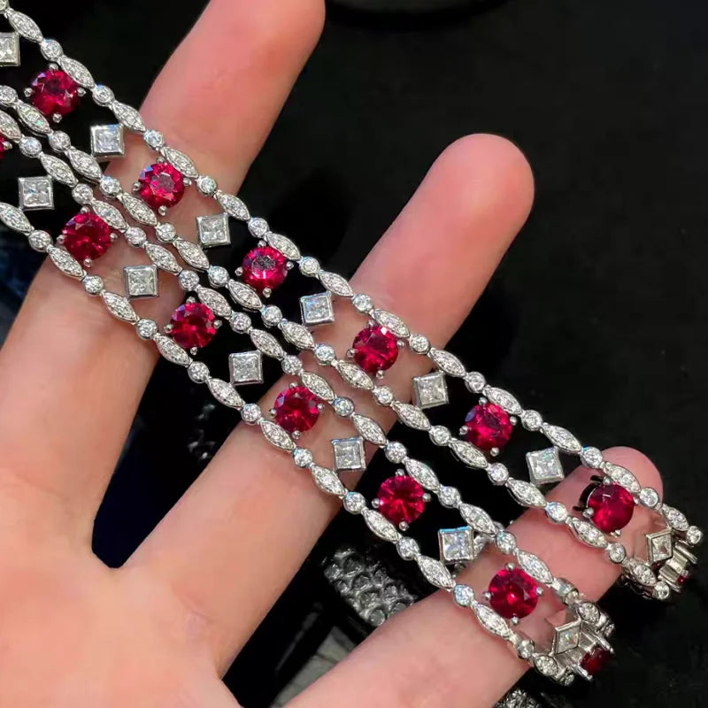 Pulsera de plata de ley 925 de lujo con zafiro de laboratorio, rubí, piedra preciosa de alto carbono, diseño hueco, joyería fina